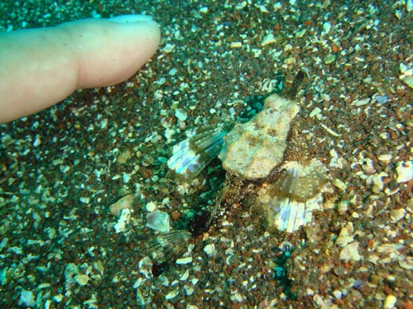 TOUR NO:36 2008.11.24(祭月)in 真鶴 Condition 天 気: 晴れ>くもり 海 況: 良好 気 温: 13℃ 水 温: 19℃ 透明度: 12~15m Entry Point DIVE1 琴ヶ浜 53分 11.9m DIVE2 琴ヶ浜 57分 10.4m メンバー:稲葉茂2、内田均2、新井知子2 出会った魚:ウミテング、カエルアンコウウオ(4個体)、アオリイカ、シロキス、ミツボシスズメダイ、ハナハゼ、ミノカサゴ、ヒラメ、ムカデミノウミウシ、アオウミウシ、その他etc. 食事処:川口水産