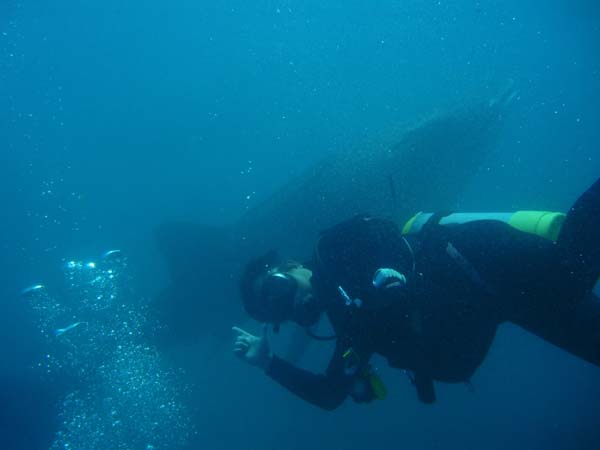 天候:晴れ 気温:28℃ 水温:25℃ 海況:良好 透明度:8-15m Dive1 高根 40分 19m Dive2 ジンベイ 30分 7m メンバー:岡島史枝2,内田均2,金賛吉2,国保百合恵2 出会った魚:クマドリアンコウウオ、コブダイ、キビナゴ、水中神社、コショウダイ、カンパチ、クロダイ、ジンベイザメ、その他、etc. サービス: 波左間海中公園 食事処:未来企画(アジマグロ丼,海鮮丼) 寄り道:梅の屋(竹岡ラーメン)、角屋、英寿司、etc.